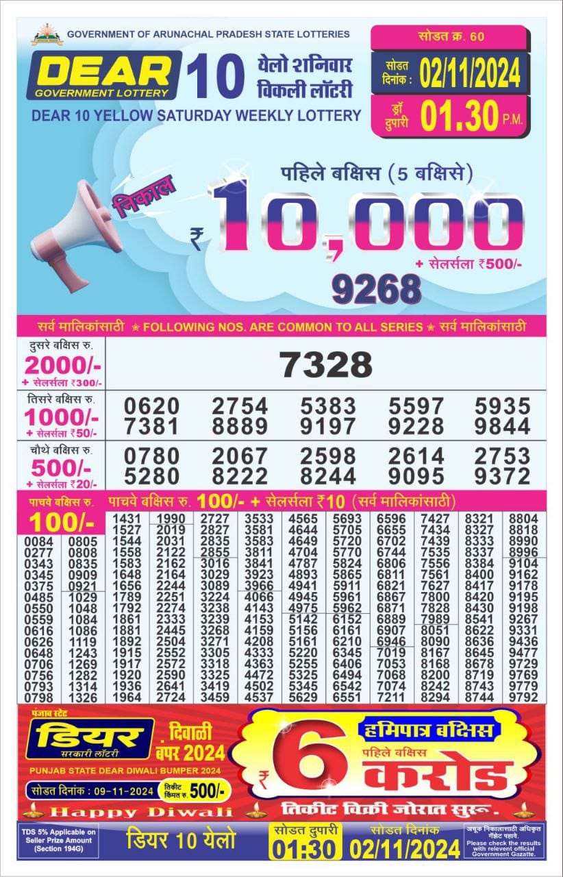 Dear 10 yellow lottery 1.30PM Result 2/11/24