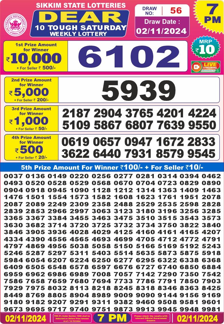 Dear 10 tough 7pm result 2-11-24