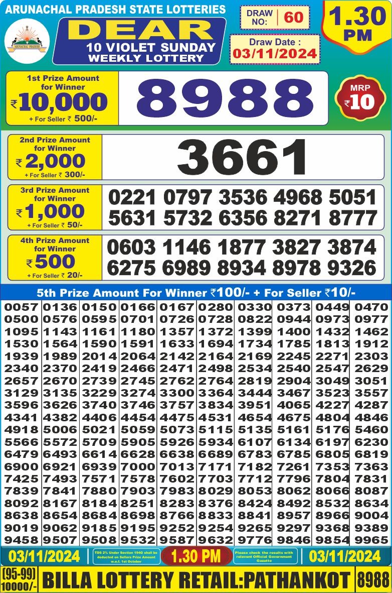 Dear 10 violet lottery 1.30PM Result 3/11/24