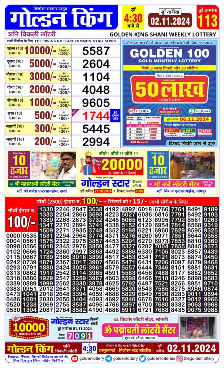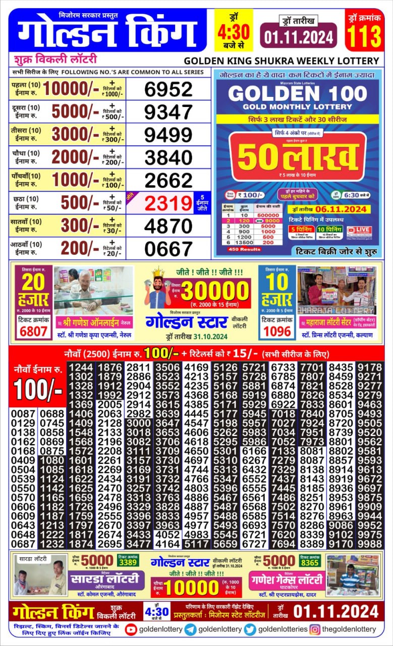 Golden king  weekly lottery 4.30pm result 2.11.24