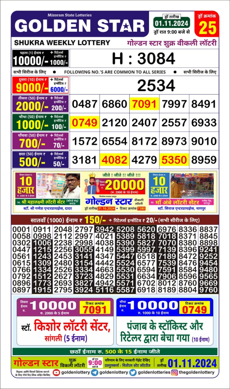 Golden Star  weekly Lottery result 1.11.24