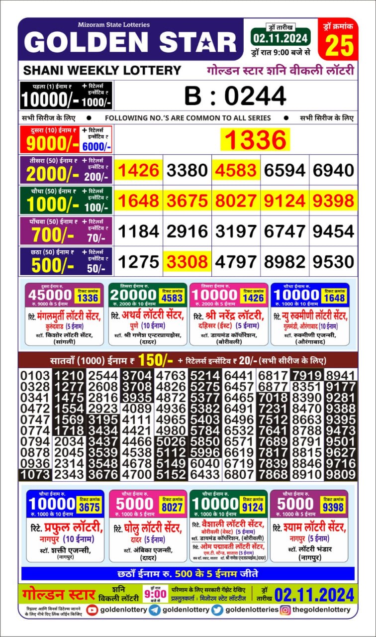 Golden Star  weekly Lottery result 2.11.24
