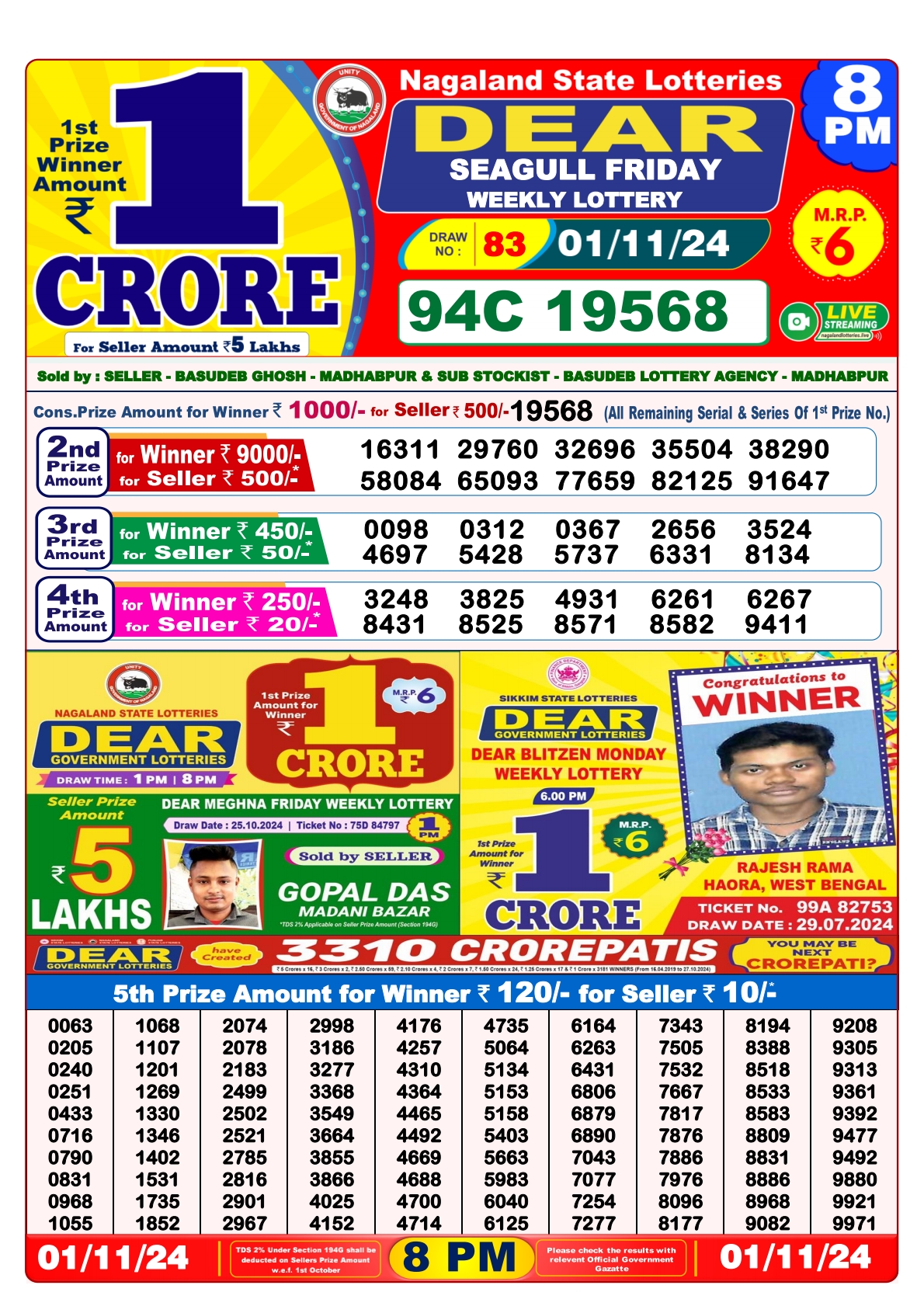 Dear seagull Weekly Lottery 8PM Result 1.11.24