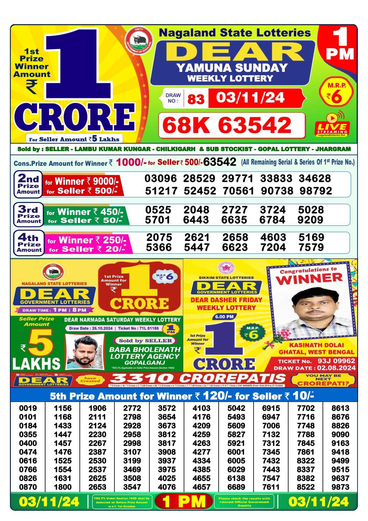 Dear yamuna  Weekly 1pm result 3-11-24