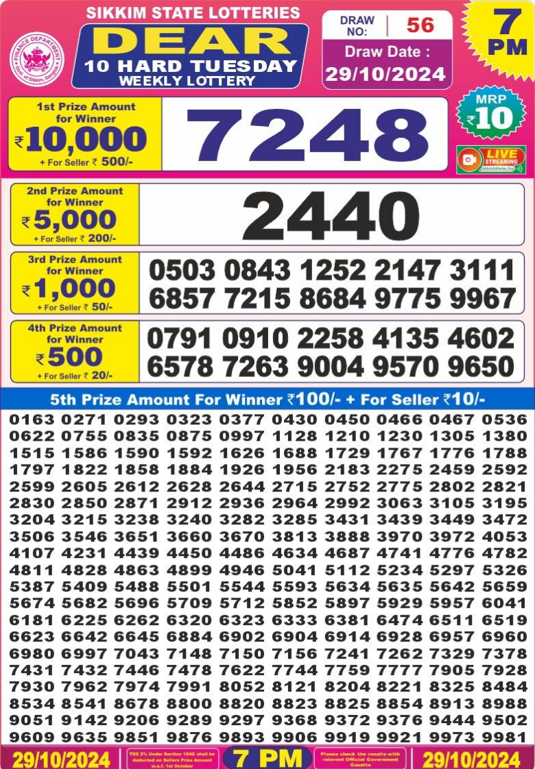 Dear 10 hard 7pm result 29-10-24