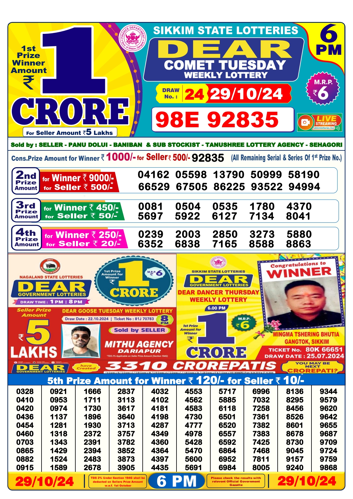 Dear comet tuesday  weekly  6PM Result 29.10.24