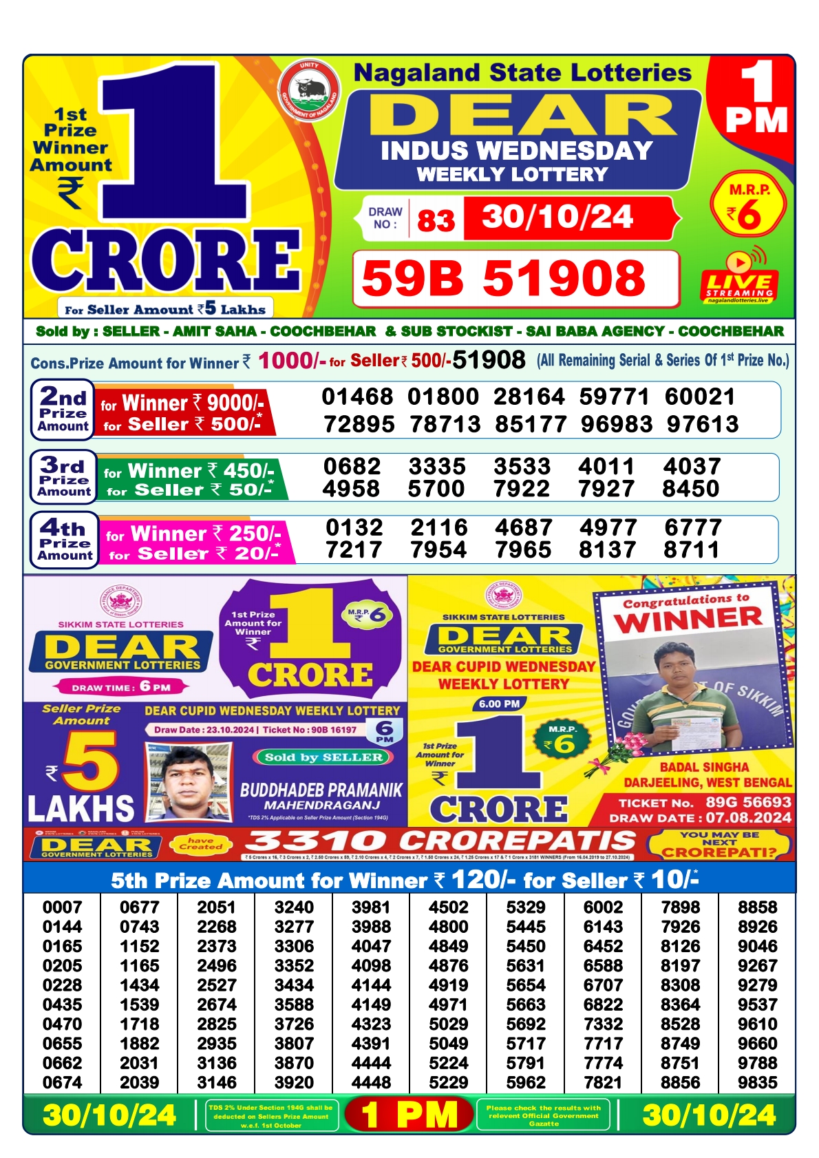 Dear indus  Weekly 1pm result 30-10-24