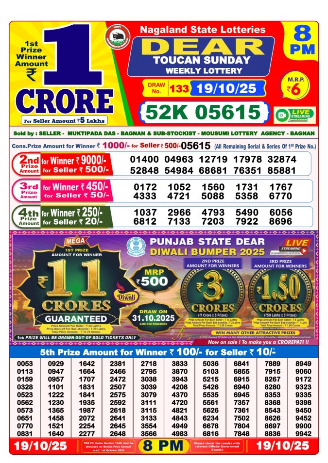 Kerala Lottery Bhagyathara BT 25 Result 3PM Today 20.10.2025