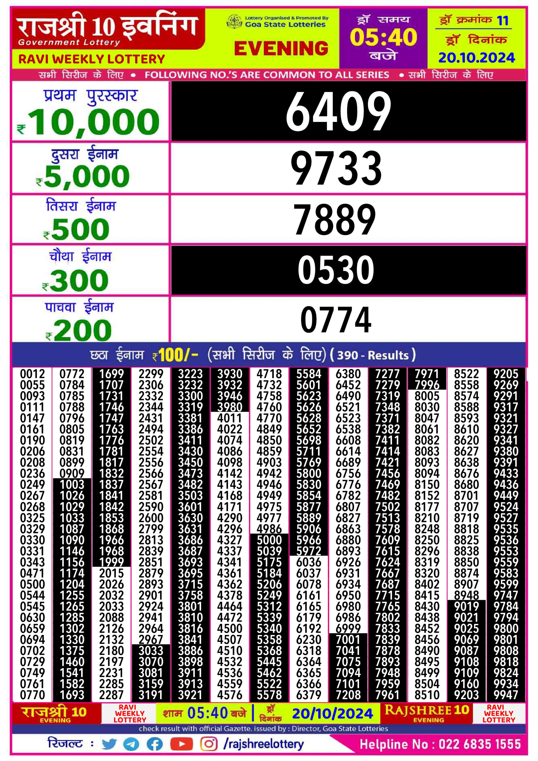 Rajshree 10 evening  sunday  5:40pm result 20.10.24