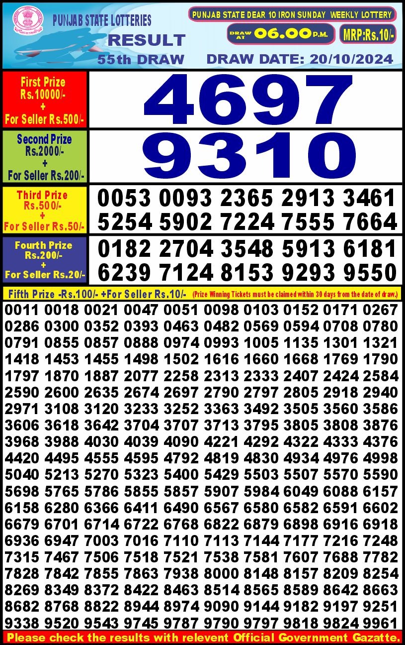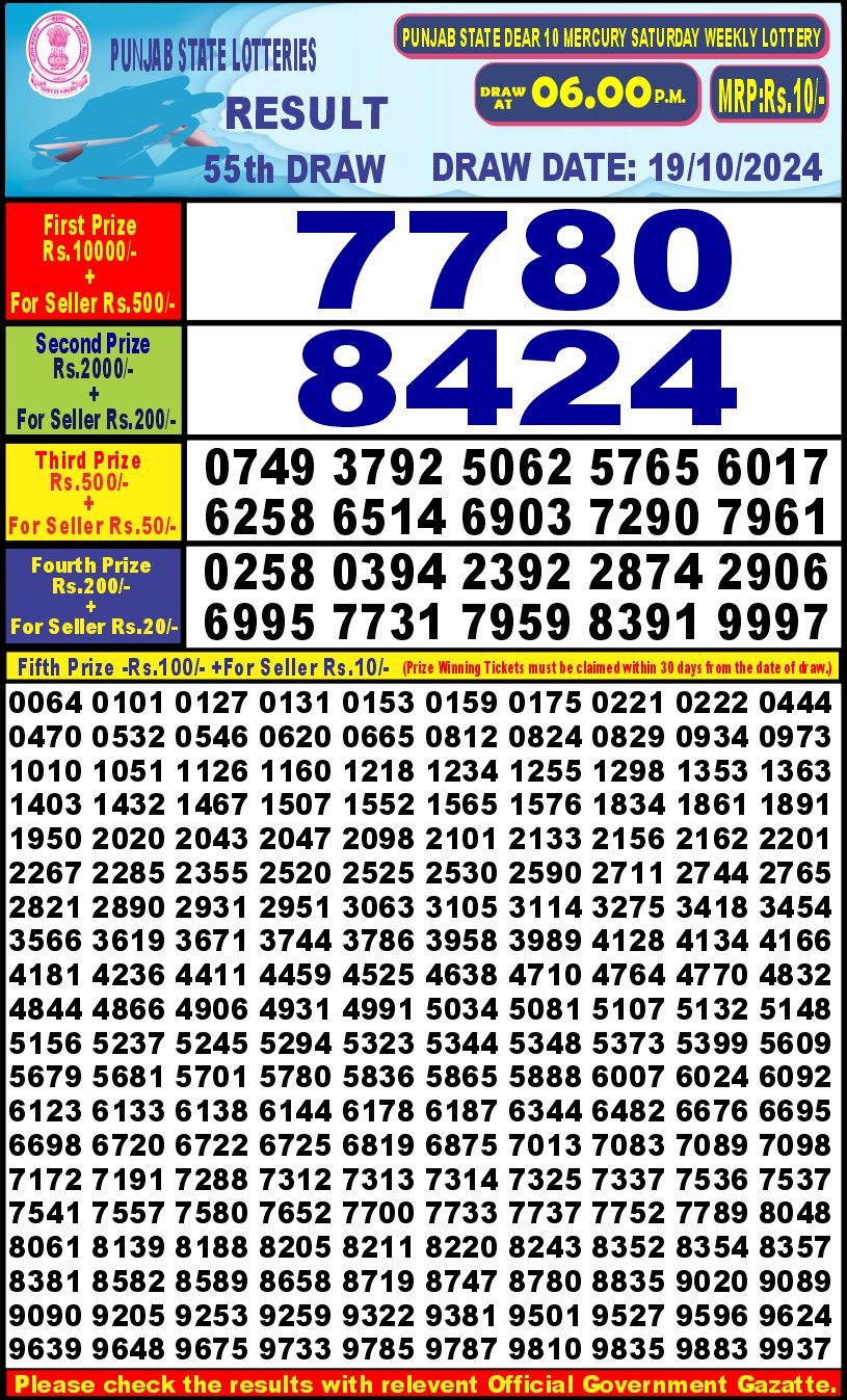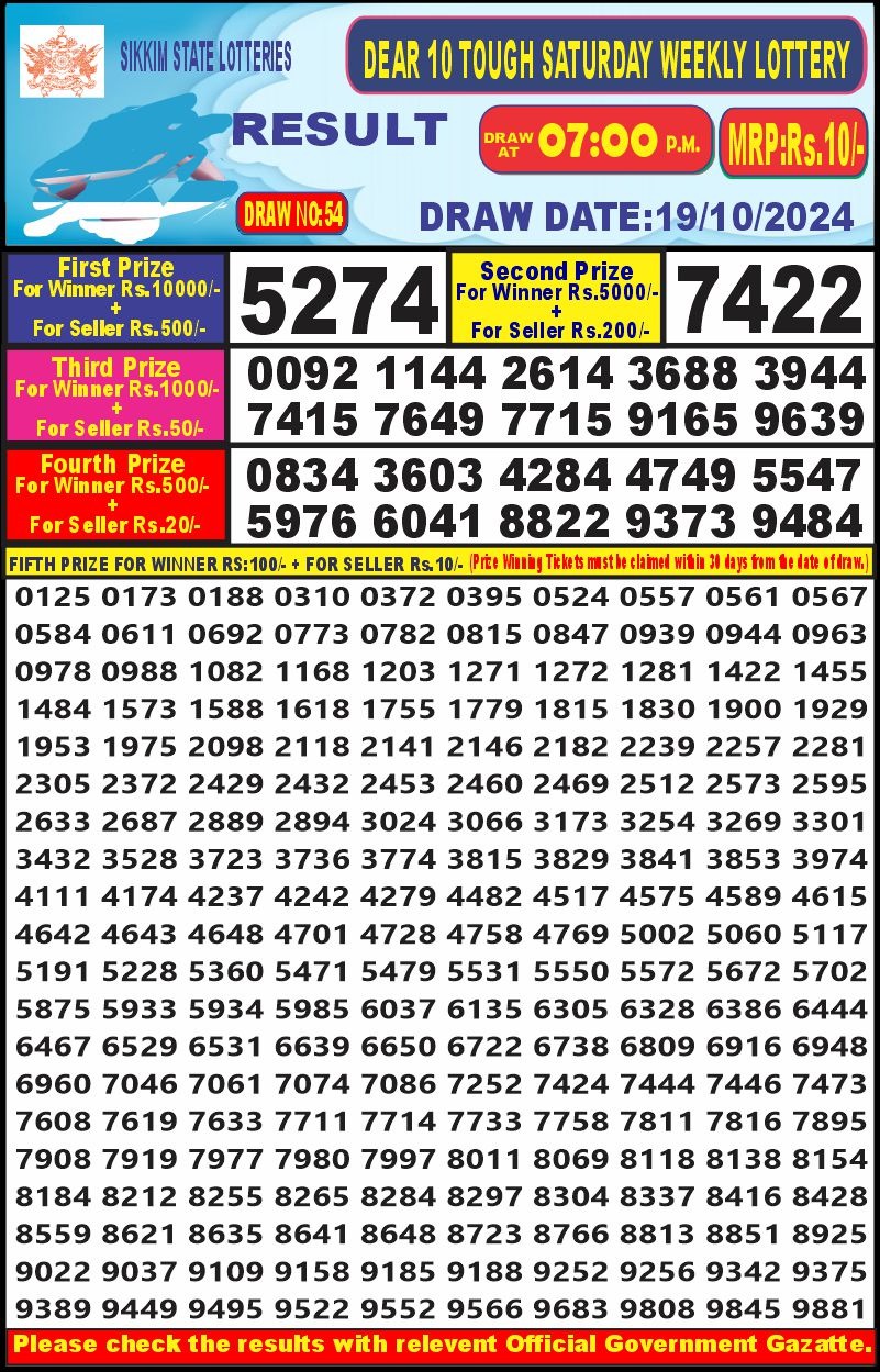Dear 10 blue lottery 1.30PM Result 21/10/24