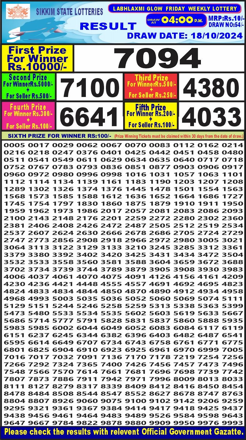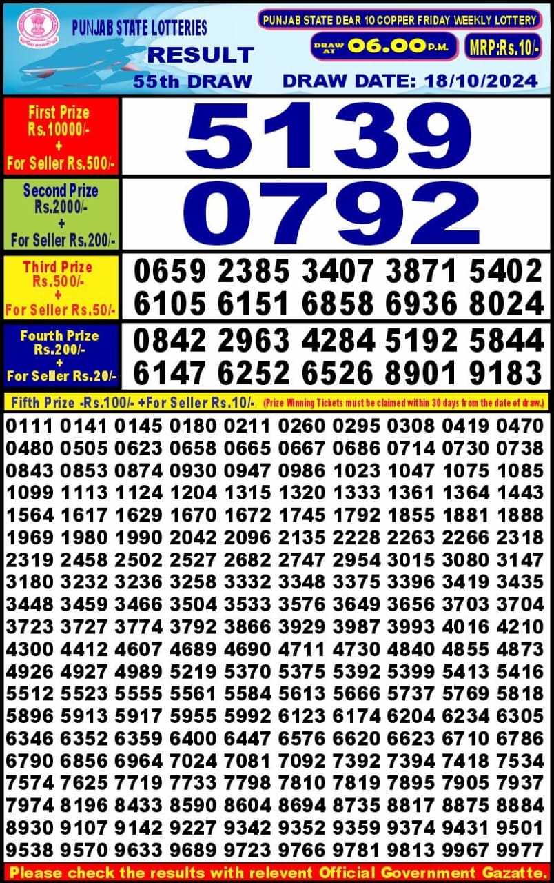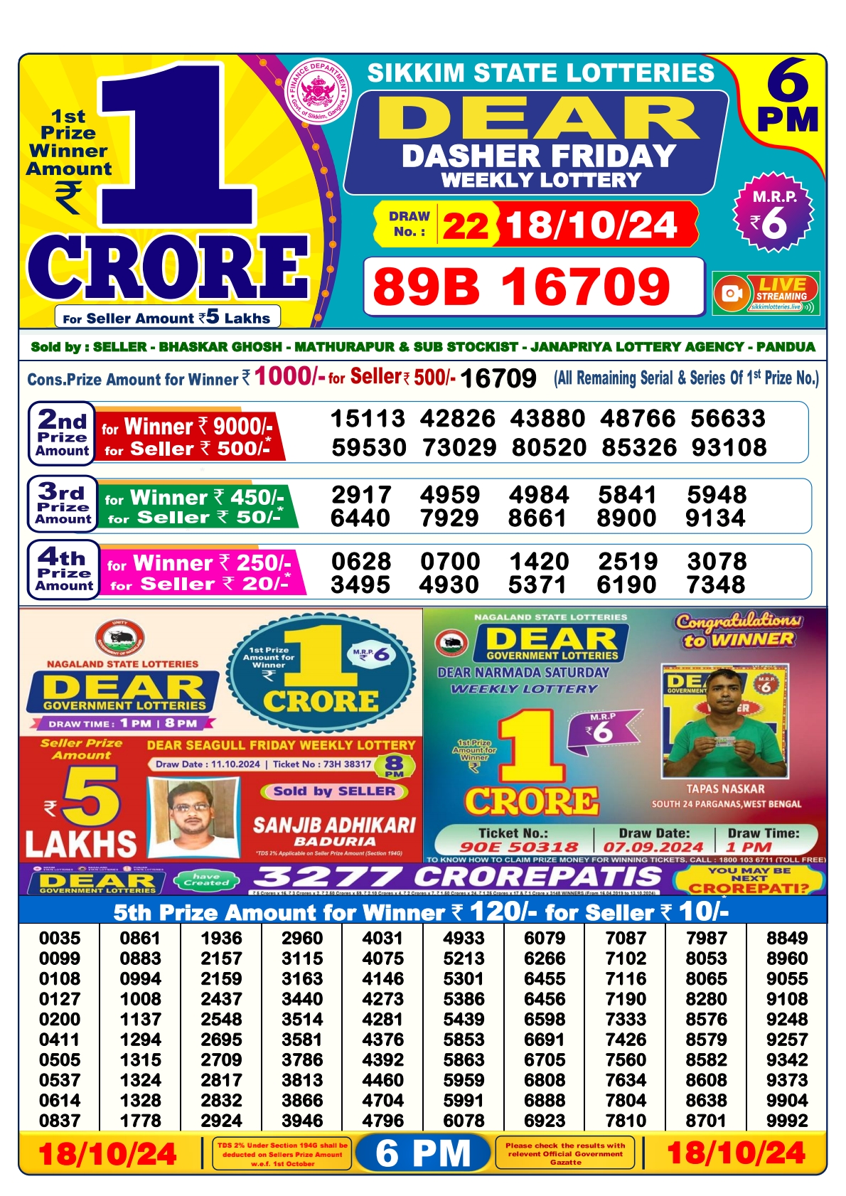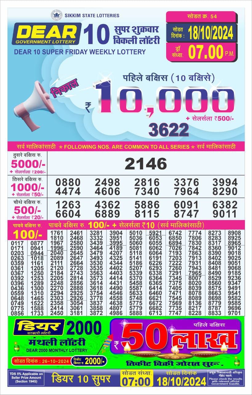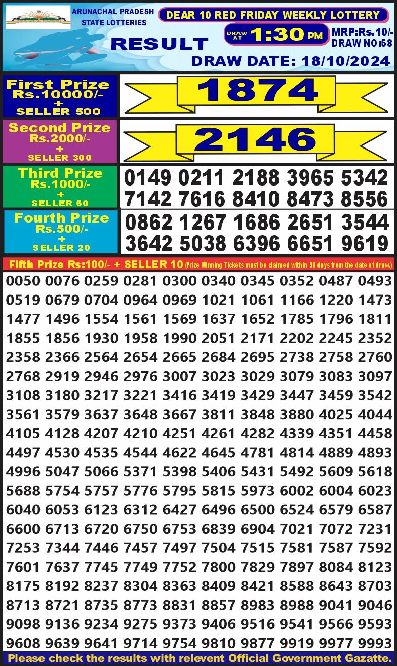 Dear 10 red lottery 1.30PM Result 18/10/24