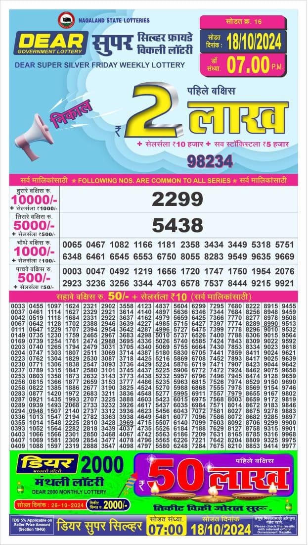 Dear donner Saturday  weekly  6PM Result 19.10.24