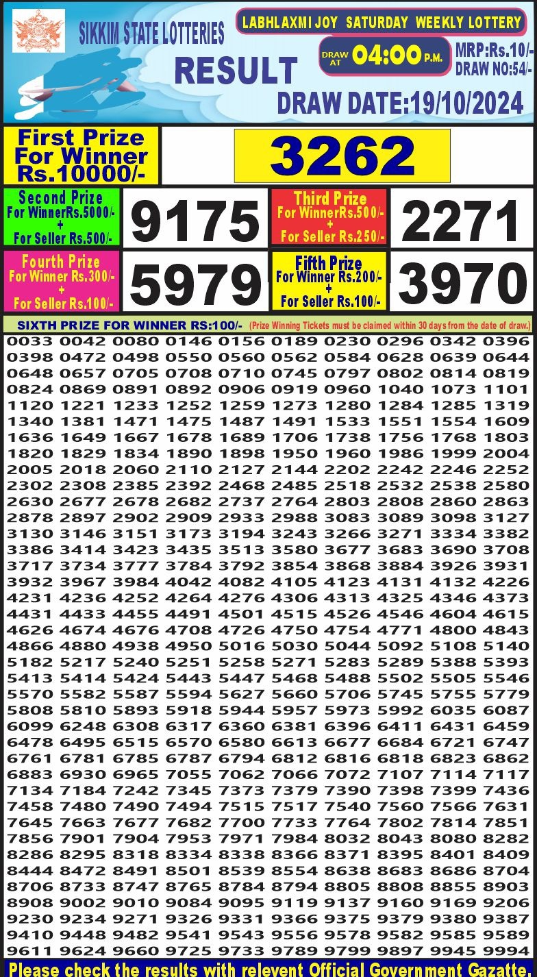 LabhLaxmi joy weekly 4PM Result 19.10.24
