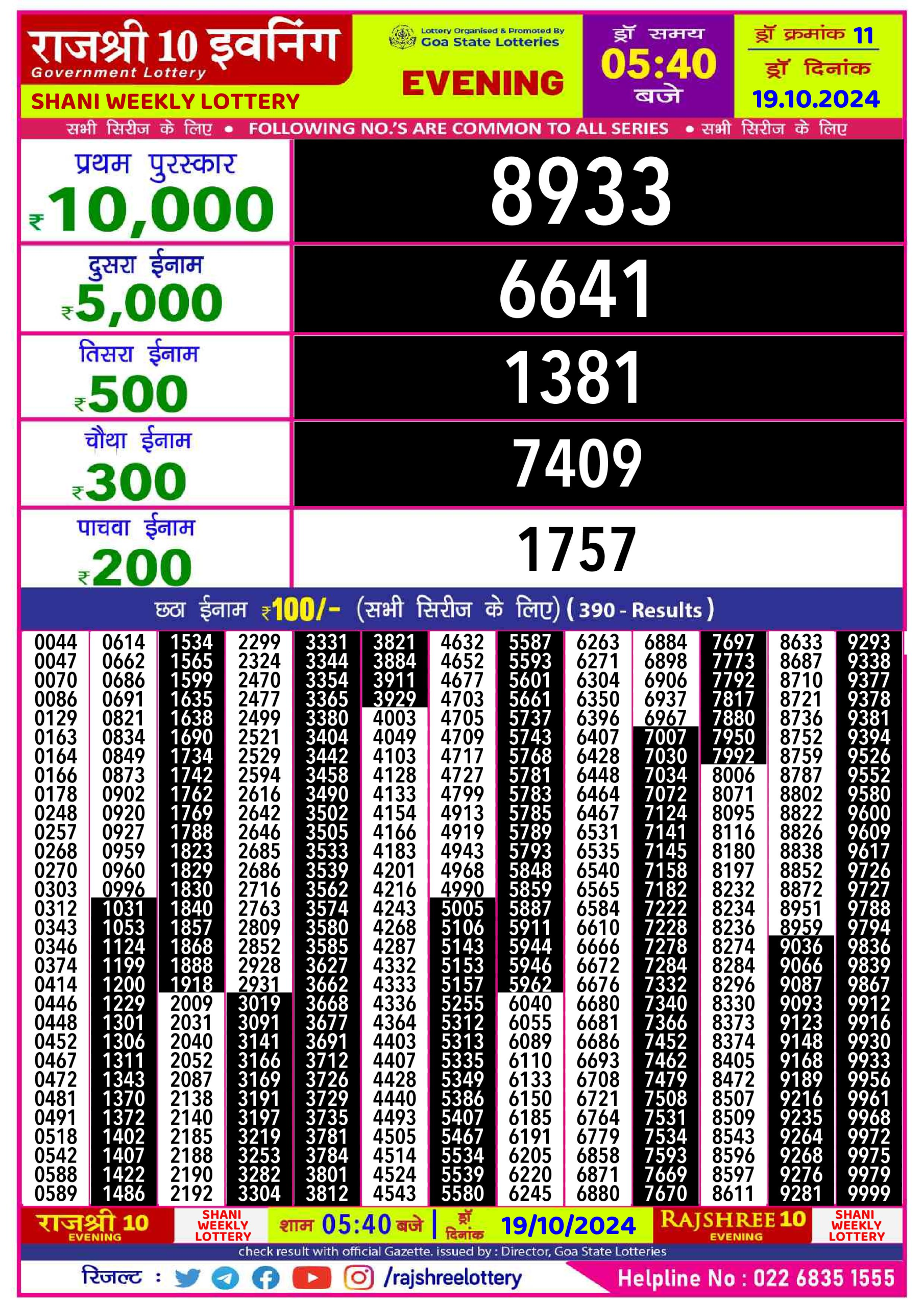 Rajshree 10 evening  saturday  5:40pm result 19.10.24