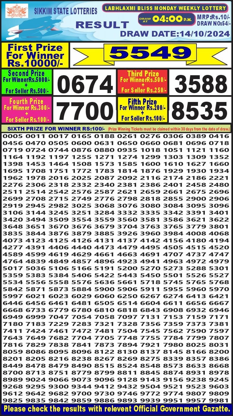 LabhLaxmi bliss weekly 4PM Result 14.10.24