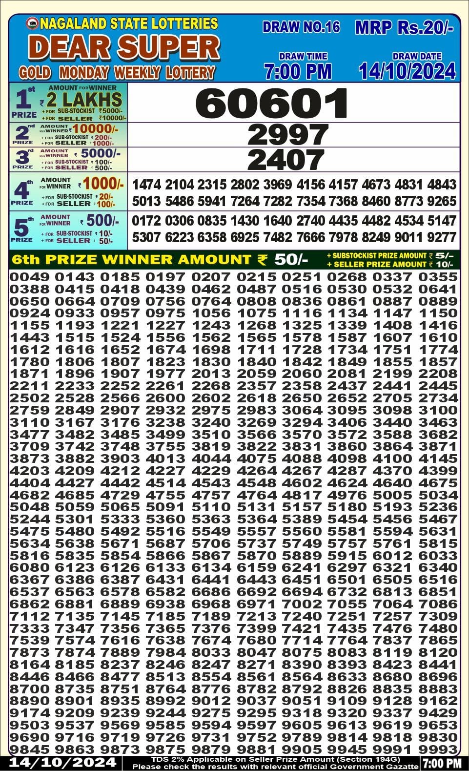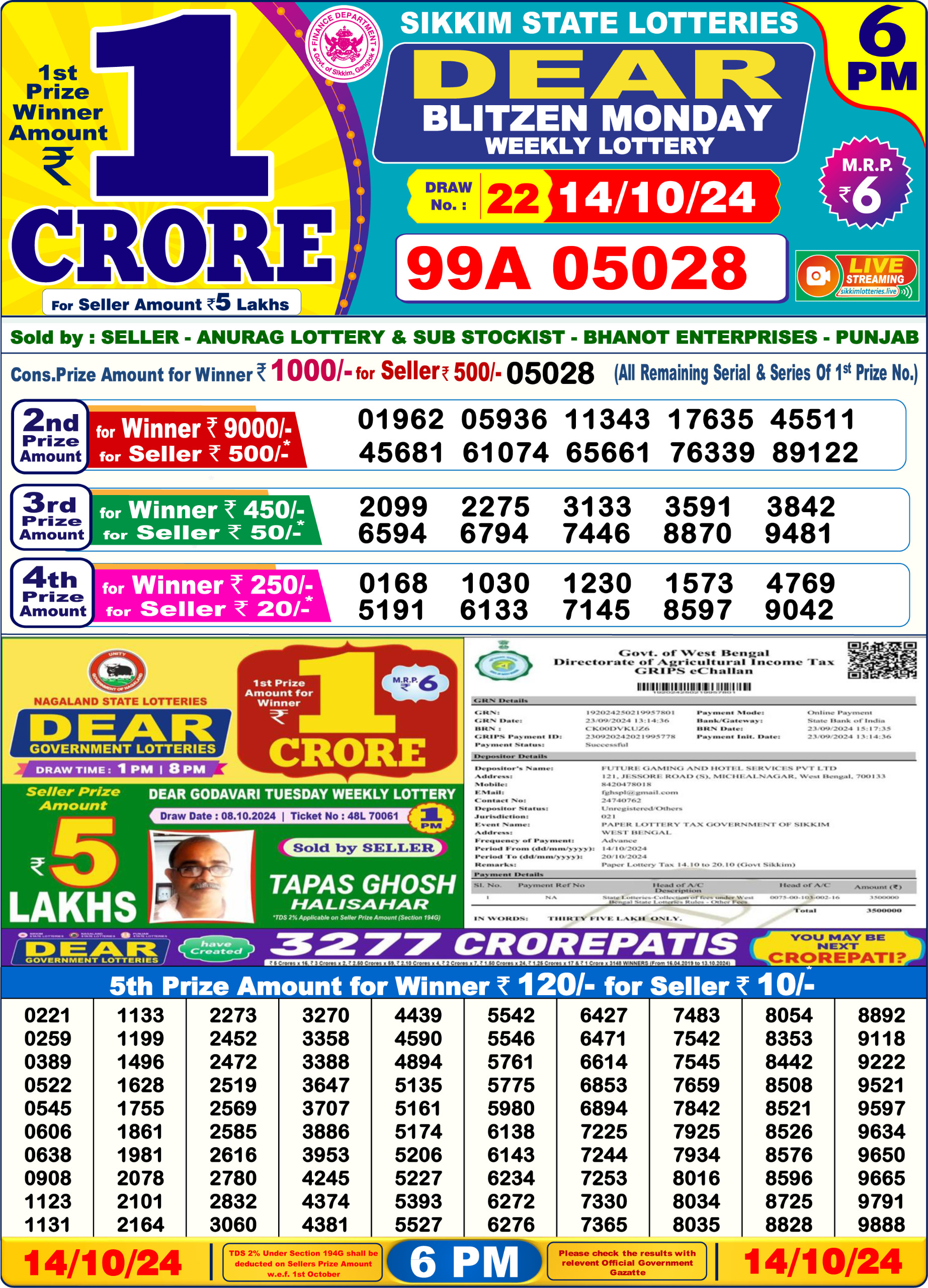 Dear blitzen monday weekly  6PM Result 14.10.24