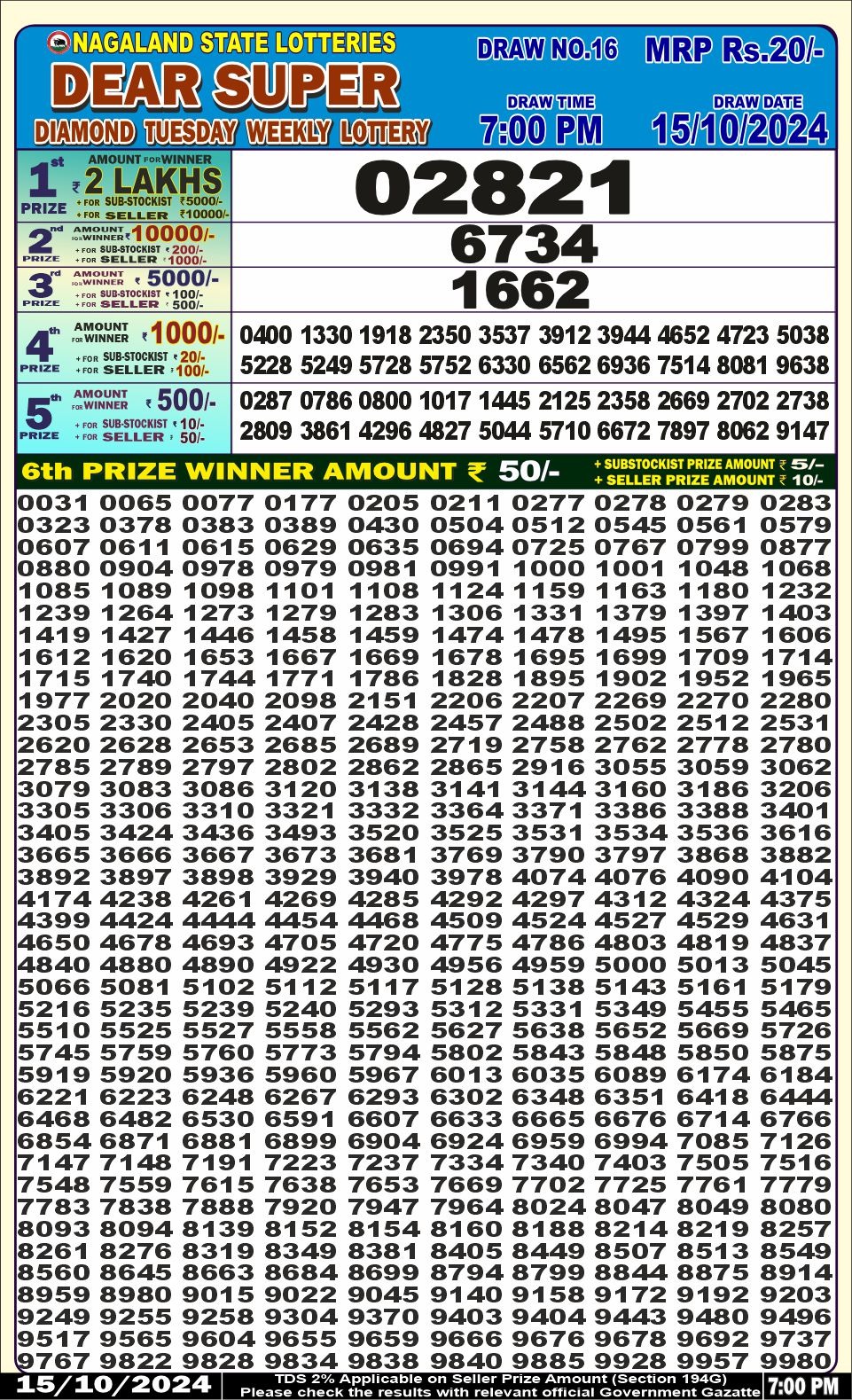 Dear comet tuesday weekly  6PM Result 15.10.24