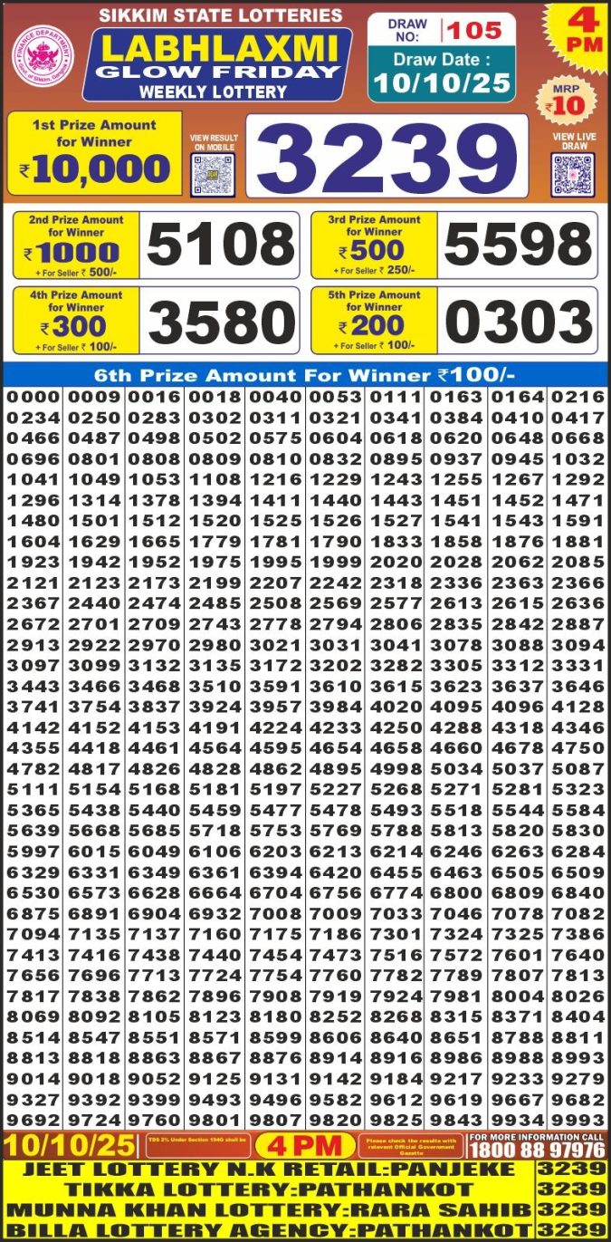 Labhlaxmi Glow Weekly 4pm Result 10.10.2025