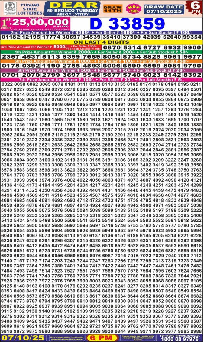 Punjab State Dear 50 6pm Lottery Result 07.10.2025