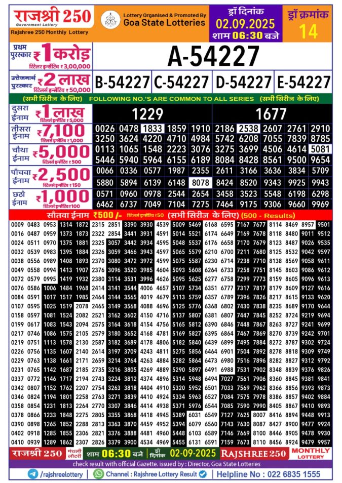 Rajshree 250 Monthly Lottery Result 02.09.2025