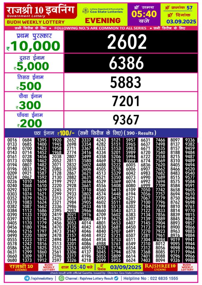 Rajshree 10 Evening Wednesday 5:40pm Lottery Result 03.09.2025