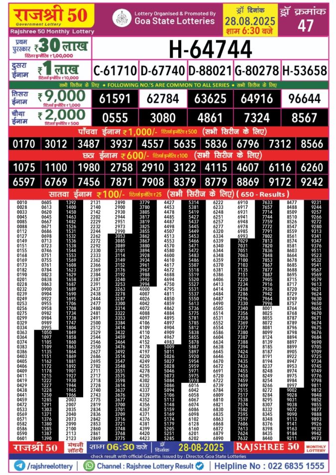 Rajshree 50 Monthly lottery Result Today 28:08:25