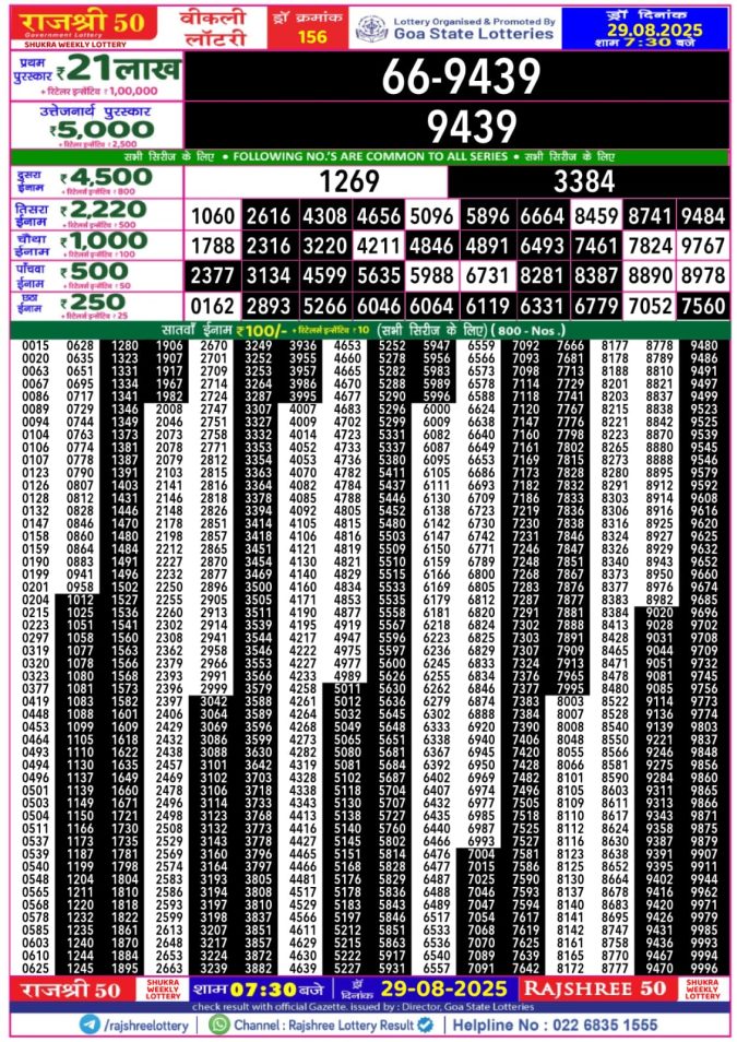 Rajshree 50 Lottery 7:30pm Result 29.08.2025