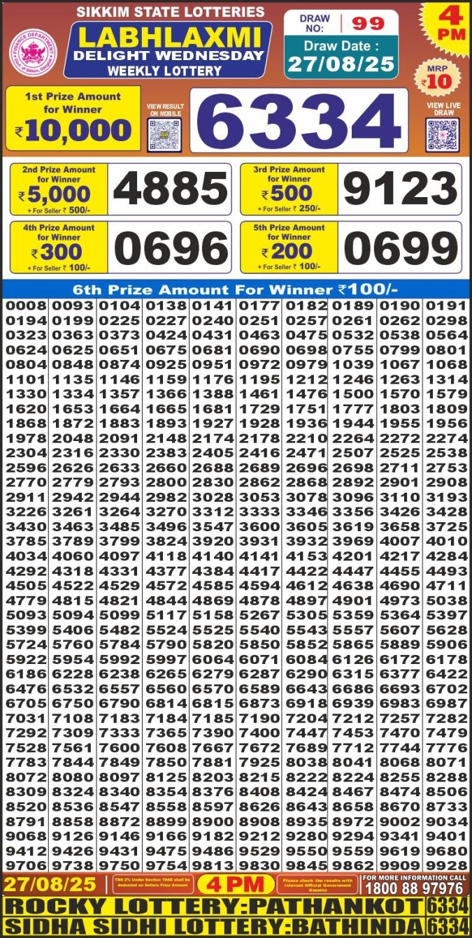 Labh Laxmi Delight Weekly Lottery 4pm Result 27.08.2025