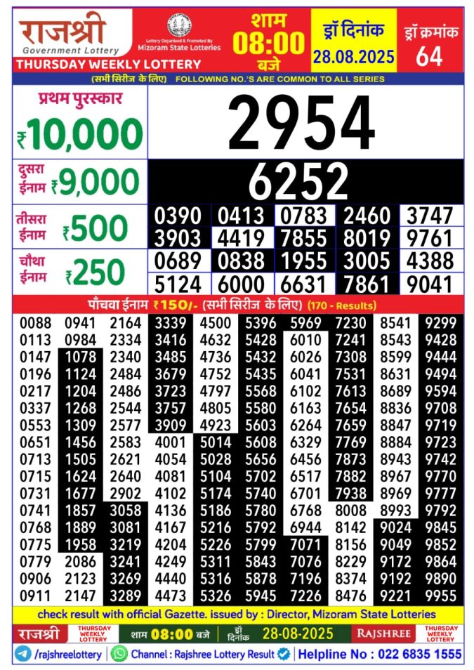 Rajshree 10 Evening Thursday 5:40pm Result 28.08.2025