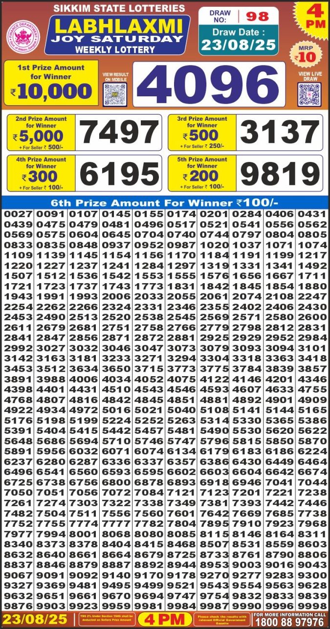 Labh Laxmi Joy Weekly 4pm Result 23.08.2025