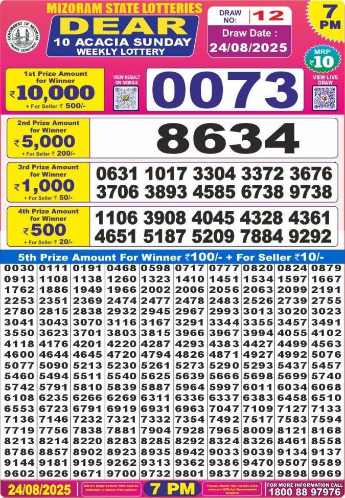 Dear 10 Violet Lottery 1.30pm Result 24.08.2025