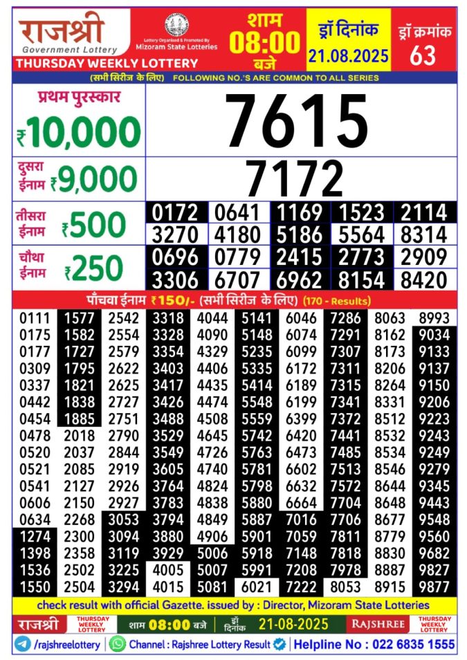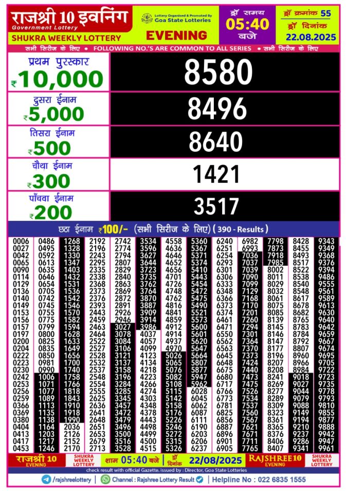 Rajshree 10 Evening Thursday 5:40pm Result 21.08.2025