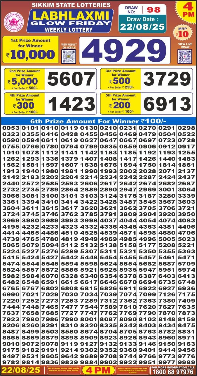 Labhlaxmi Glow Weekly 4pm Result 22.08.2025