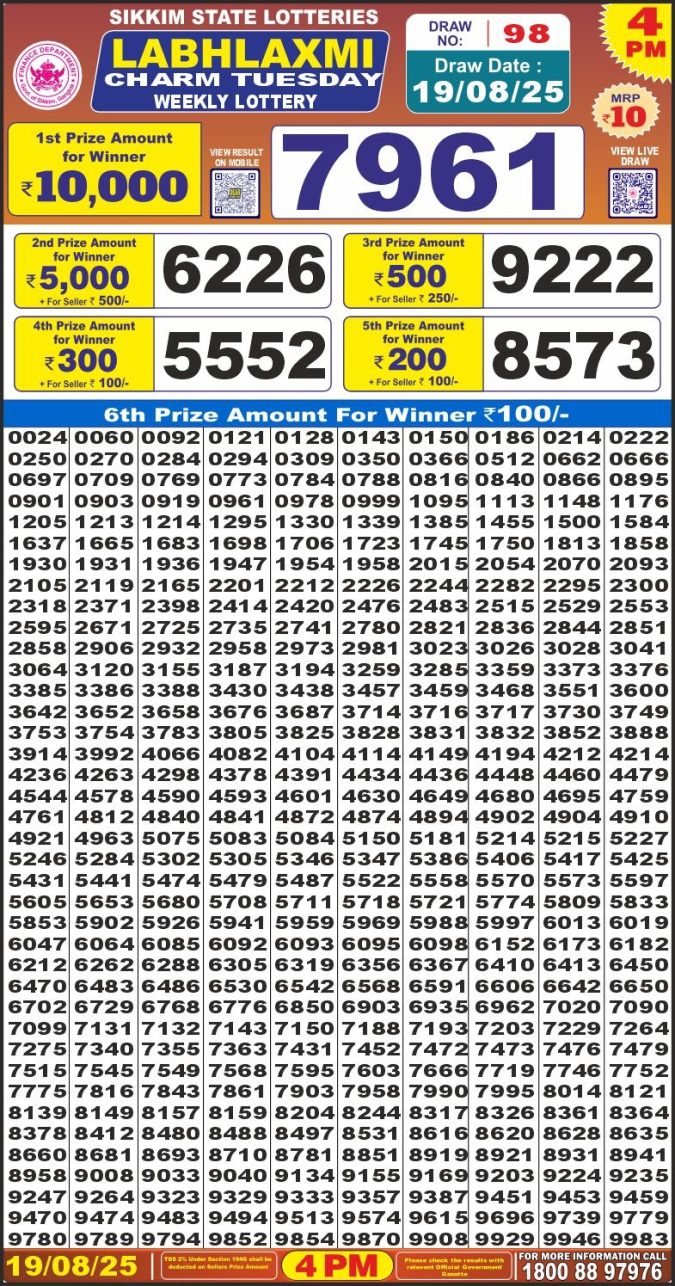 Labh Laxmi Charm Weekly 4pm Result 19.08.2025