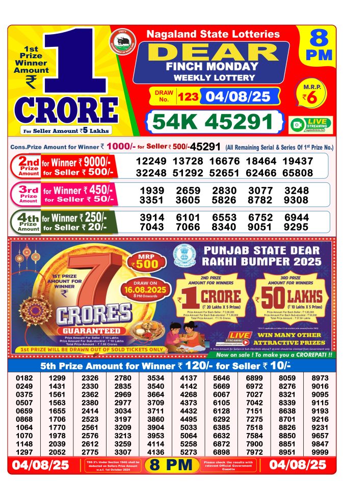 Dear Finch Weekly Lottery 8pm Result 04.08.2025