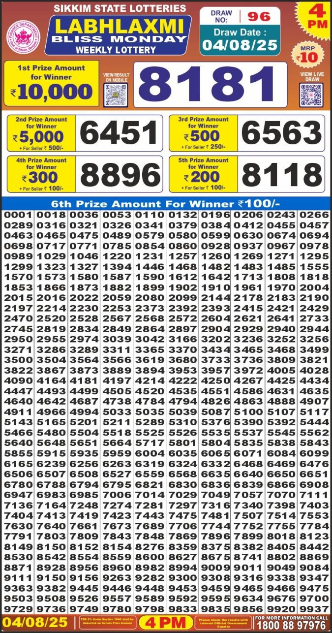 Labhlaxmi Bliss Weekly 4pm Result 04.08.2025