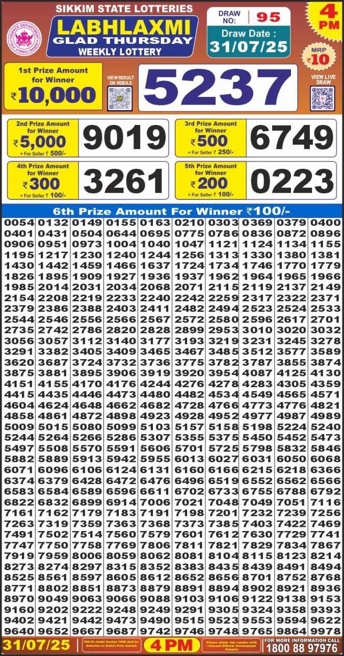Labh Laxmi Glad Weekly 4pm Result 31.07.2025