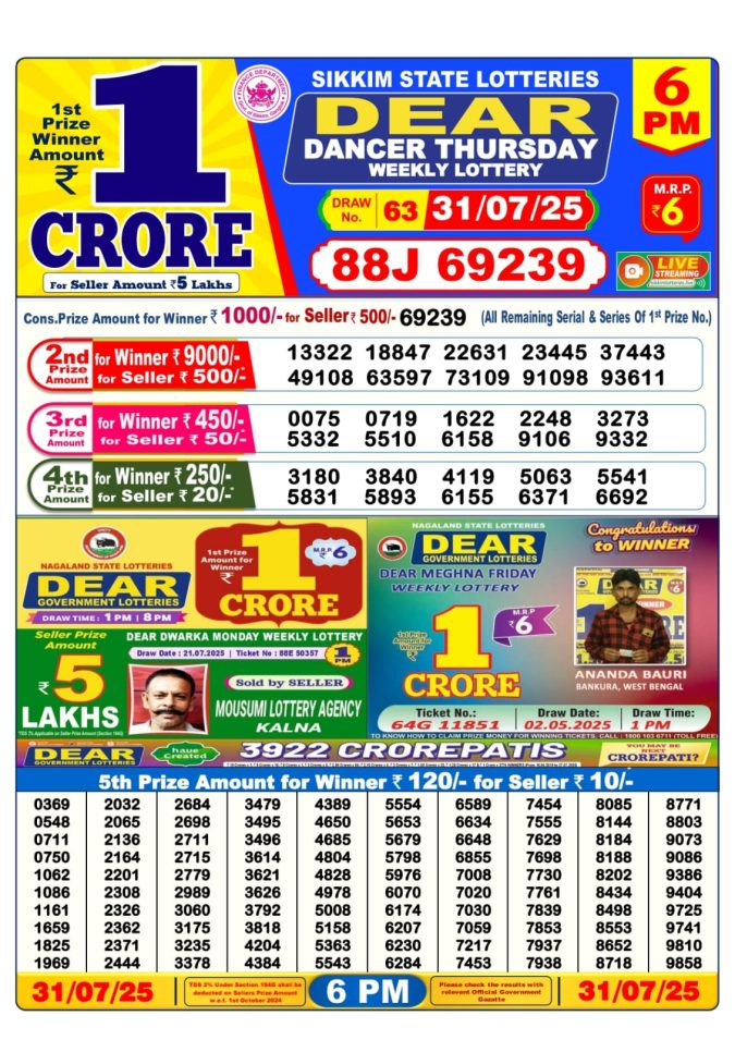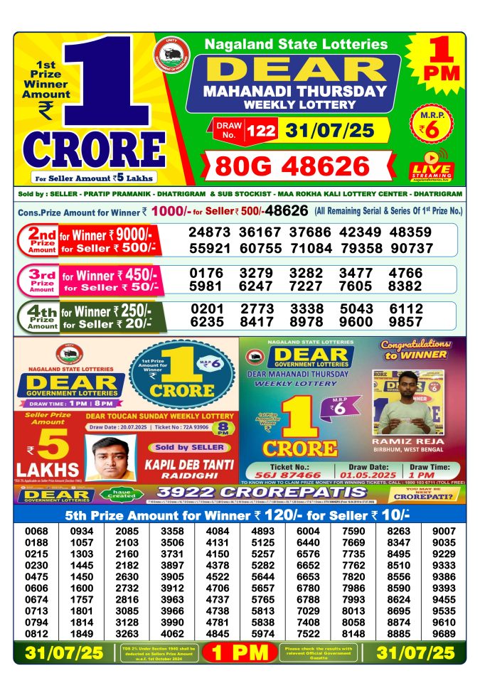 Dear Mahanadi Thursday Weekly 1pm Result 31.07.2025
