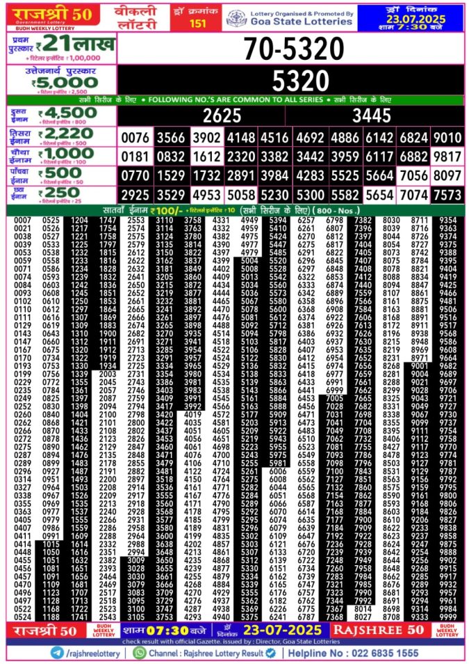 Rajshree 50 Monthly Lottery Result 6.30PM 24.07.2025