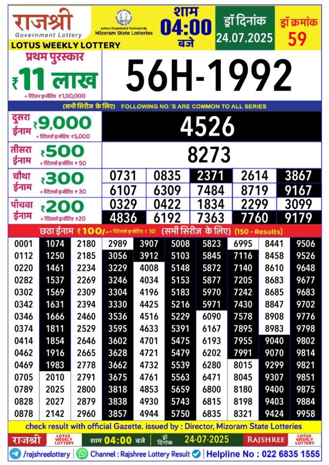 Rajshree Lotus Weekly Lottery 4PM Result 24.07.2025