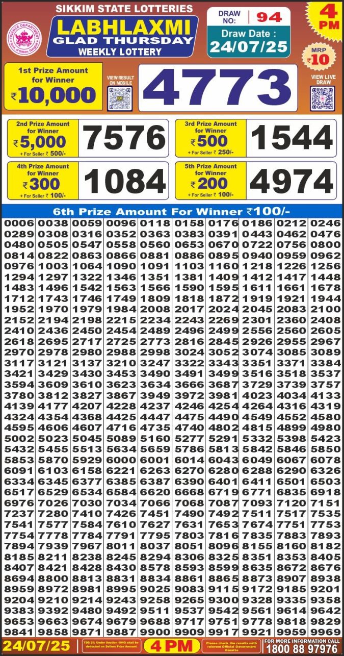 Labh Laxmi Glad weekly 4PM Result 24.07.2025