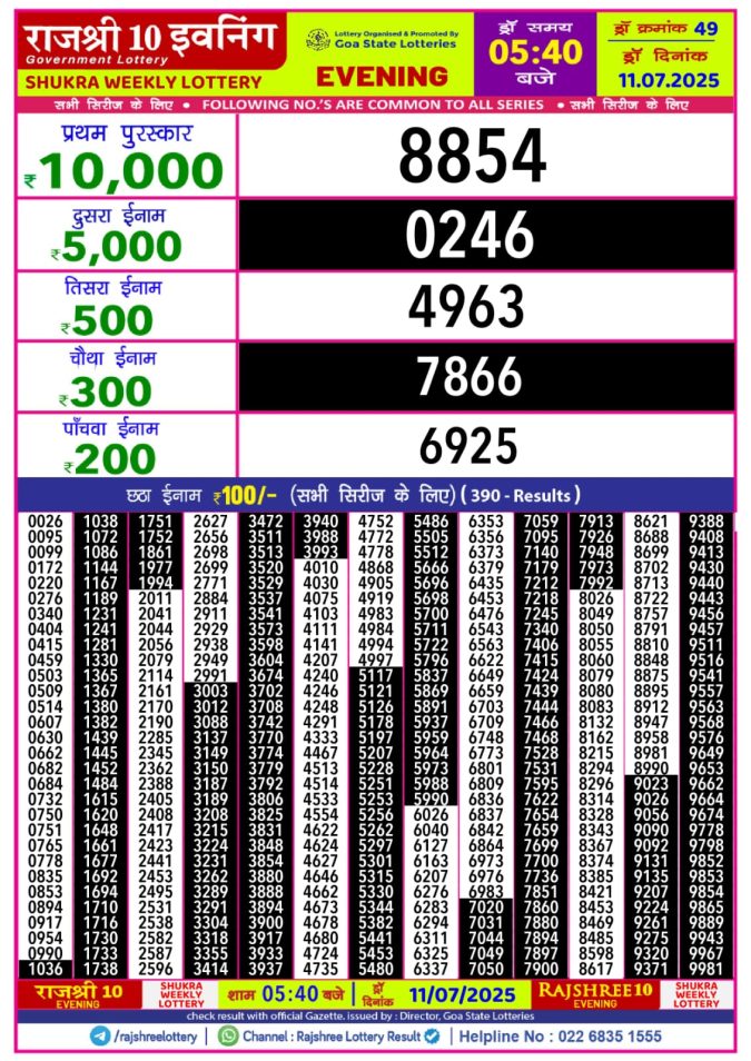 Rajshree 10 evening friday 5:40pm result 11.07.2025