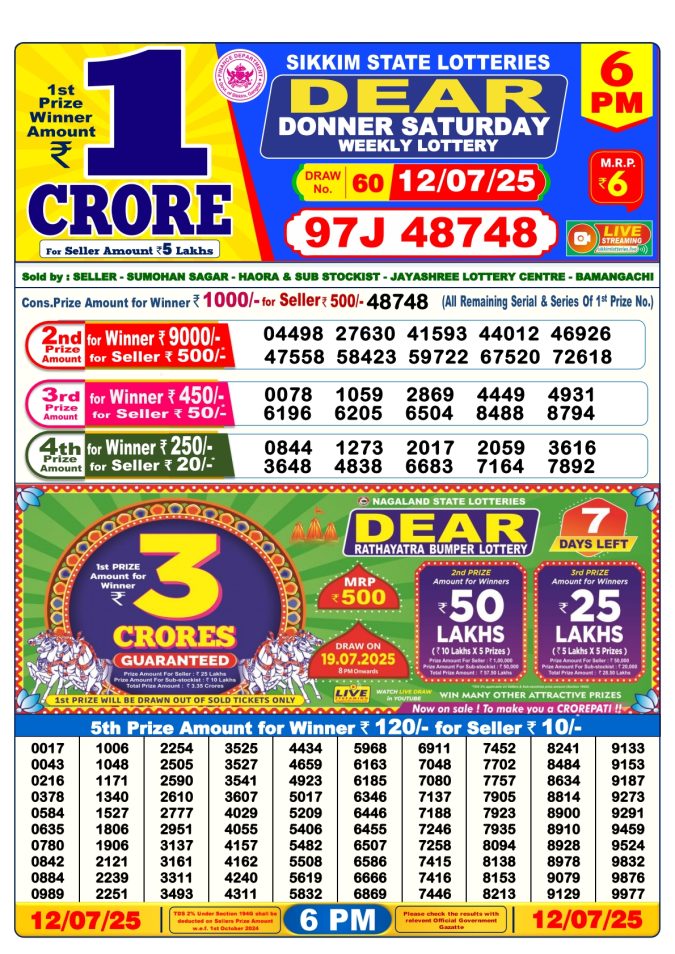 Dear donner saturday weekly 6PM Result 12.07.2025