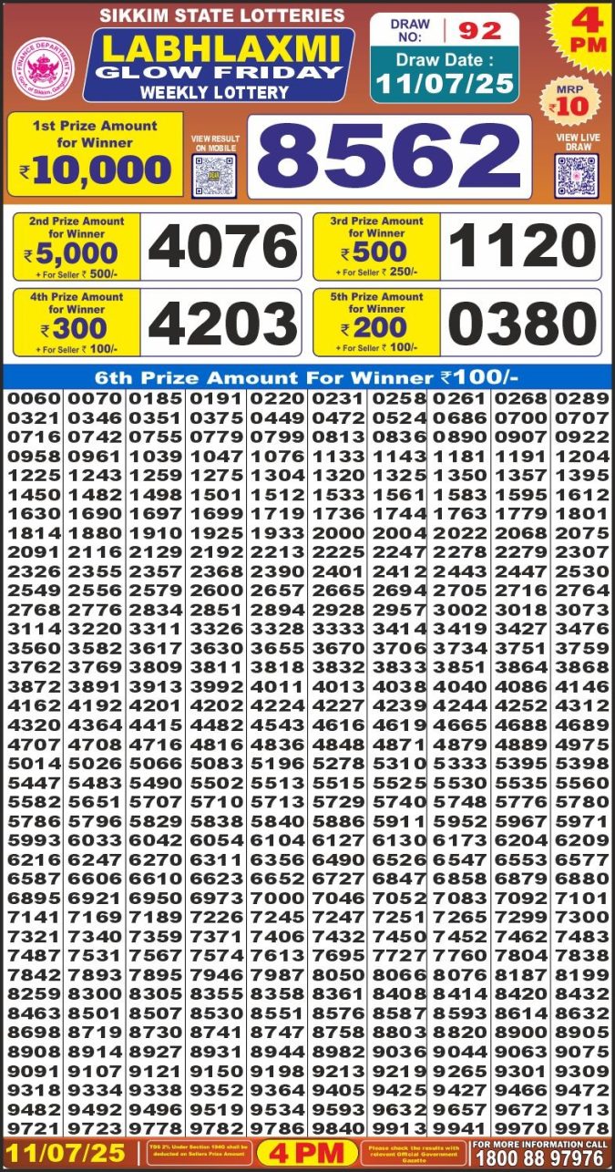 Labh Laxmi Glad weekly 4PM Result 10.07.2025