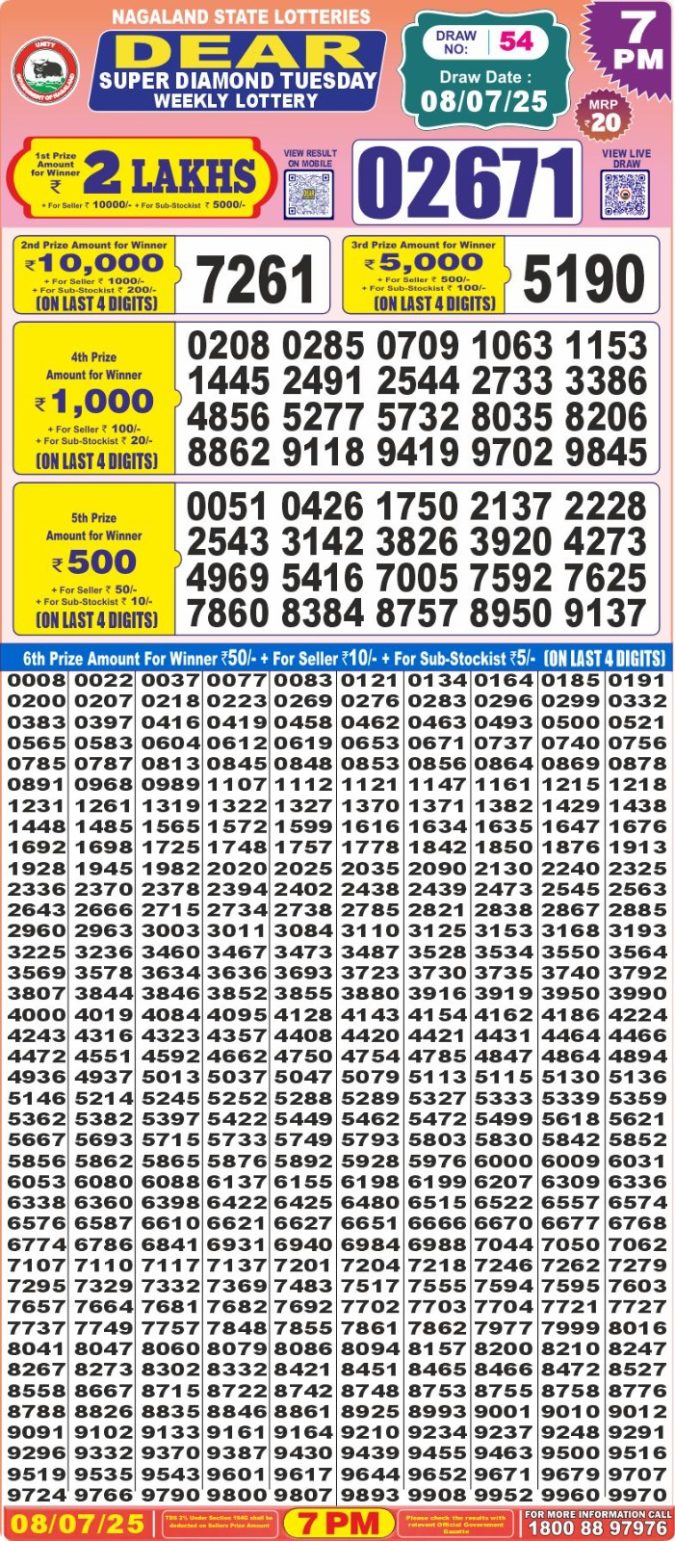 Dear Super Peral Lottery 7pm result 09.07.2025