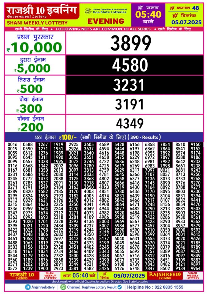 Rajshree 10 evening Saturday 5:40pm result 05.07.2025