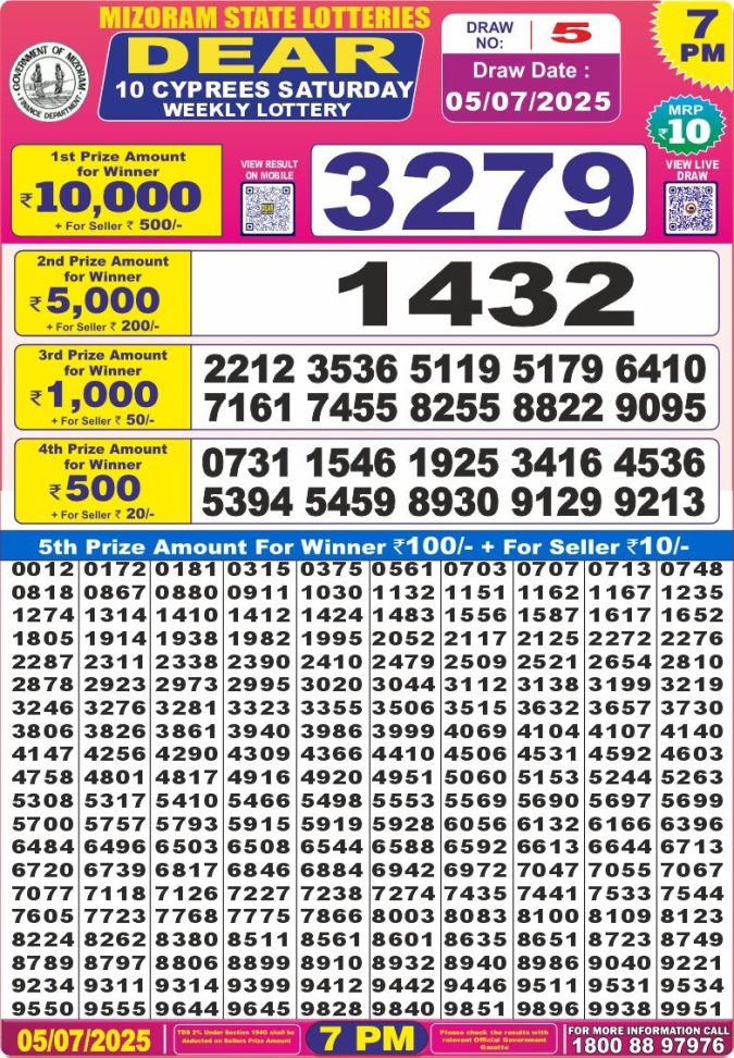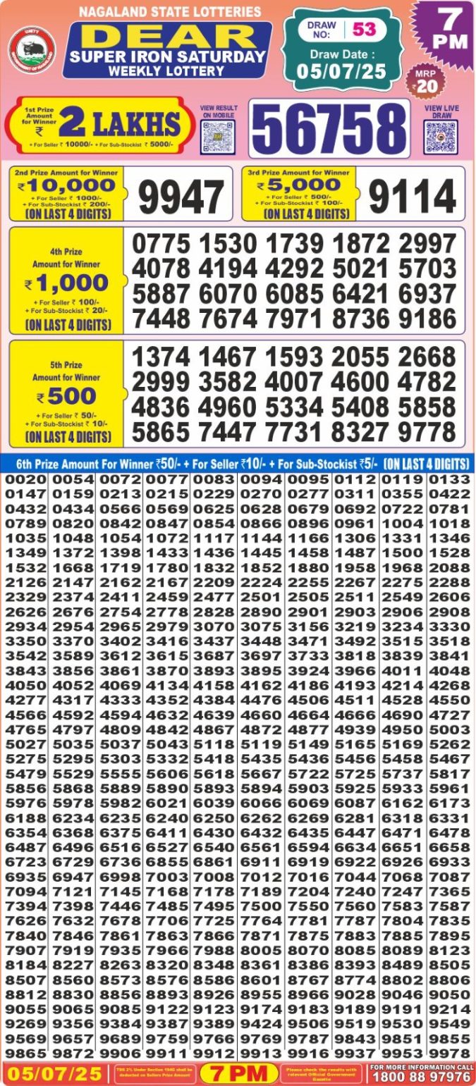 Dear 10 yellow lottery 1.30PM Result 05.07.2025