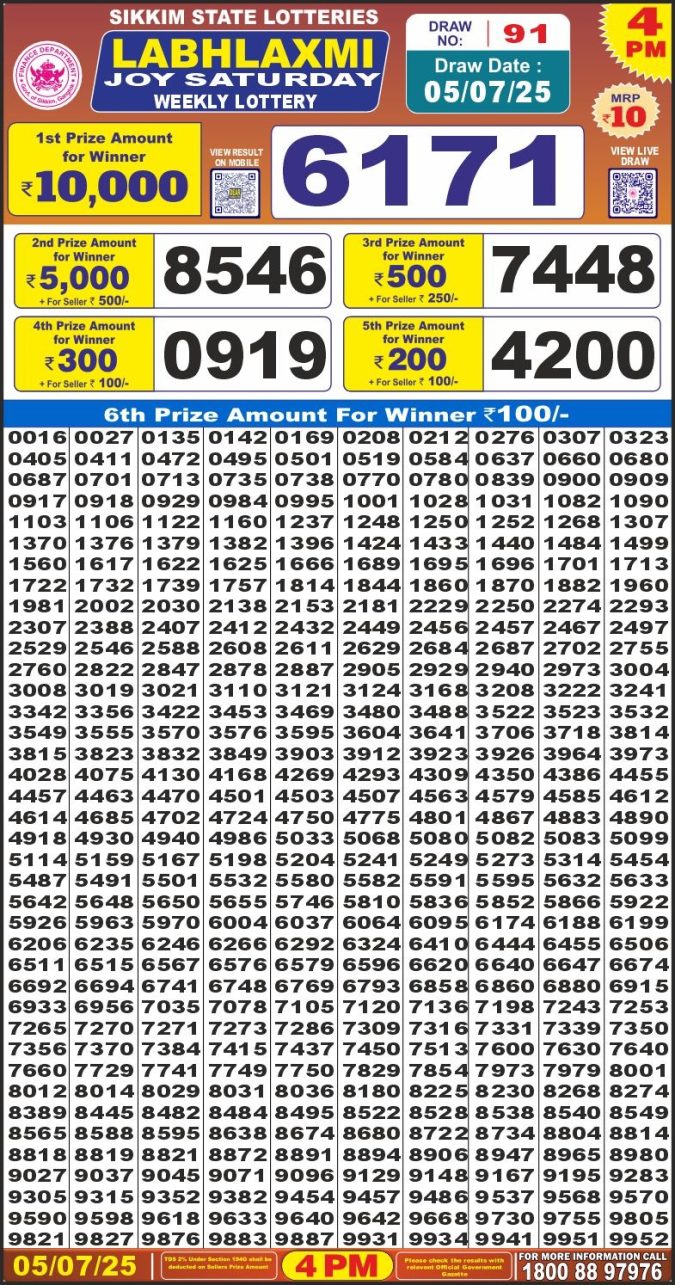 LabhLaxmi joy weekly 4PM Result 05.07.2025