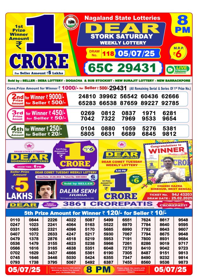 Dear stork Weekly Lottery 8PM Result 05.07.2025