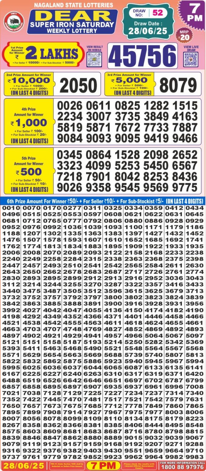 Dear 10 tough 7pm result 28.06.2025